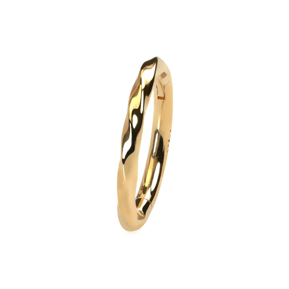 Tento krásný kroužek s pantem je vyrobený z 14k zlata. Design je jemně kroucený, což tomuto nadčasovému šperku dodává zajímavou strukturu. Skvěle se hodí k nošení v různých typech piercingu ucha jako je: helix, tragus, daith, rook, ale i lalůček. Jedná se o nadčasový šperk, který můžeš nosit každý den. Je vybaven pantem, takže se snadno nasazuje a pohodlně se nosí.