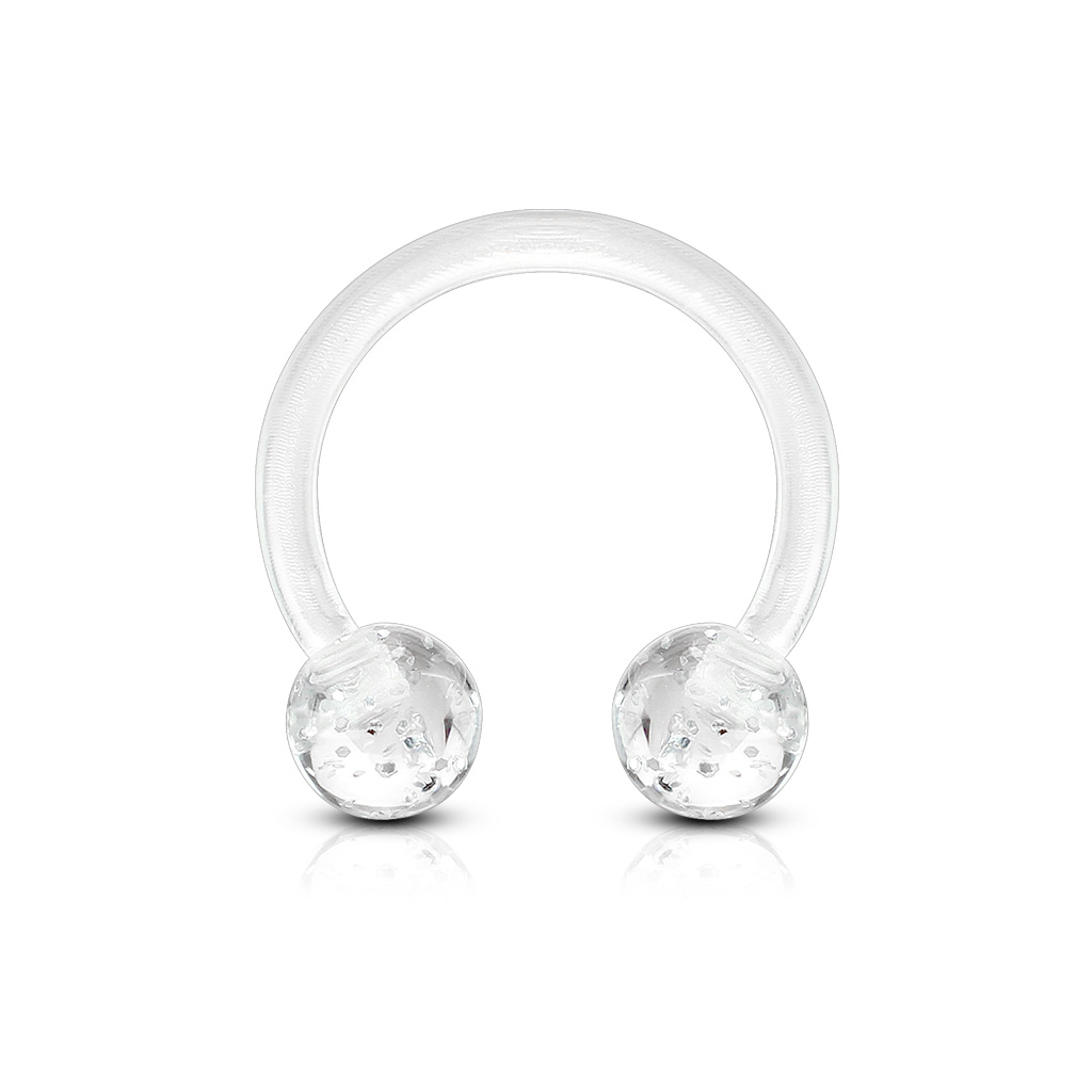 Na obrázku můžete vidět úžasnou podkovu vyrobenou z akrylátu, jejíž kuličky jsou krásně ozdobené třpytkami. Tato podkova je k dispozici v několika různých barvách, například v modré, červené nebo růžové. Podkova je však zajímavá i tím, že tělo podkovy nemá úplně stejnou barvu jako její kuličky, a je mezi nimi krásný kontrast. Například u modrého provedení má tělo podkovy světlejší modrou barvu než mají její kuličky. Tyto podkovy jsou navíc velmi flexibilní, a budou se Vám tedy skvěle nasazovat a poté i nosit.