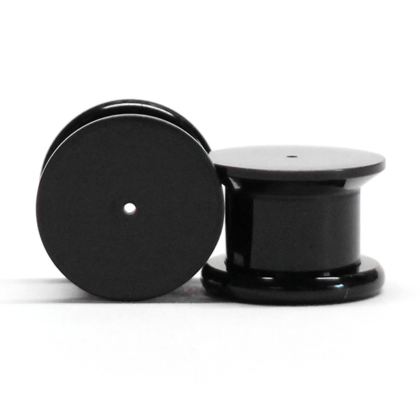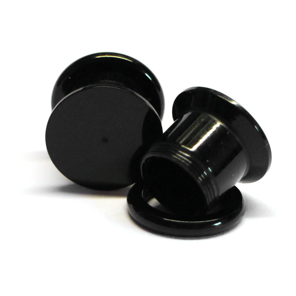 Tento plug je vyroben z černého akrylátu a má vnější závit, což umožní jeho snadné nasazení a vyjmutí. Přední strana je kompletně plochá a uprostřed má malou dírku o průměru 0,8 mm, což je velikost, která se bude hodit pro většinu náušnic, takže je můžete pohodlně vložit do tohoto plugu.