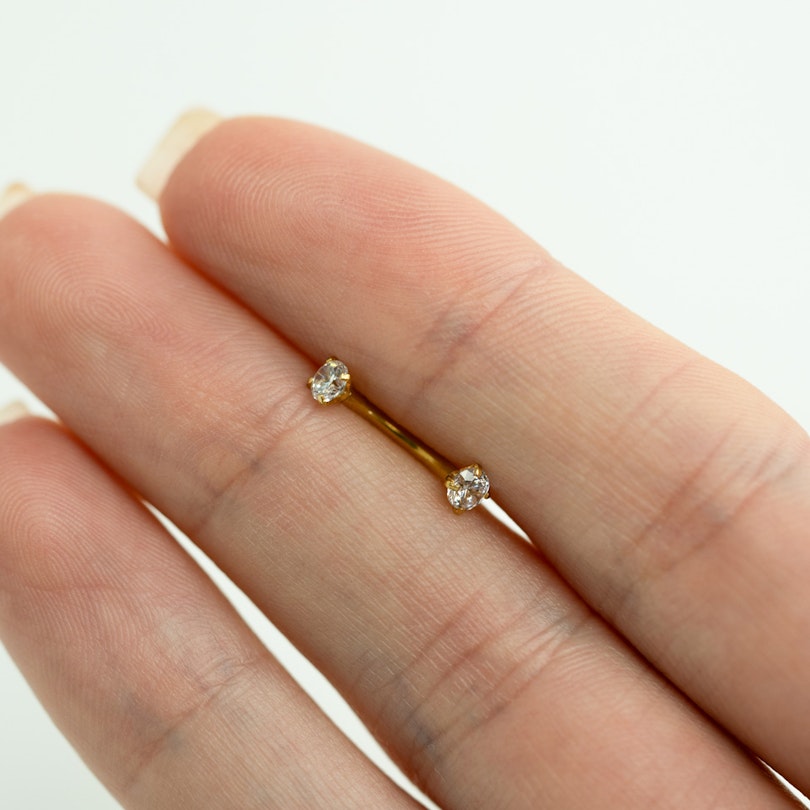 U tohoto šperku si navíc můžete vybrat v jakém barevném provedení by Vám vyhovoval - k dispozici jsou Vám tři možnosti. Ať už si však vyberete kteroukoliv barvu, kamínky na šperku budou vždy čiré. Délka tyčinky je 8mm a její tloušťka je 1,2mm.