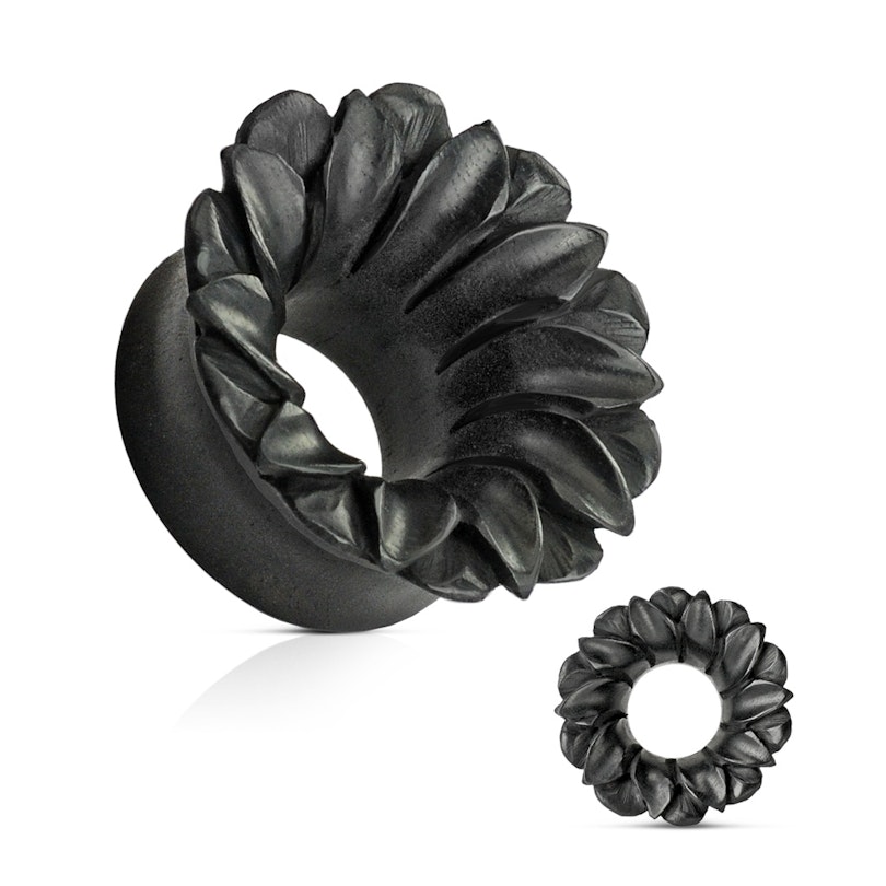 Tento černý tunel s květinou na přední straně je vyrobený ze dřeva, což je organický materiál, který se skvěle přizpůsobí vašemu tělu. Je vyřezaný do tvaru lotosového květu, což je nádherný design pro váš ušní lalůček.