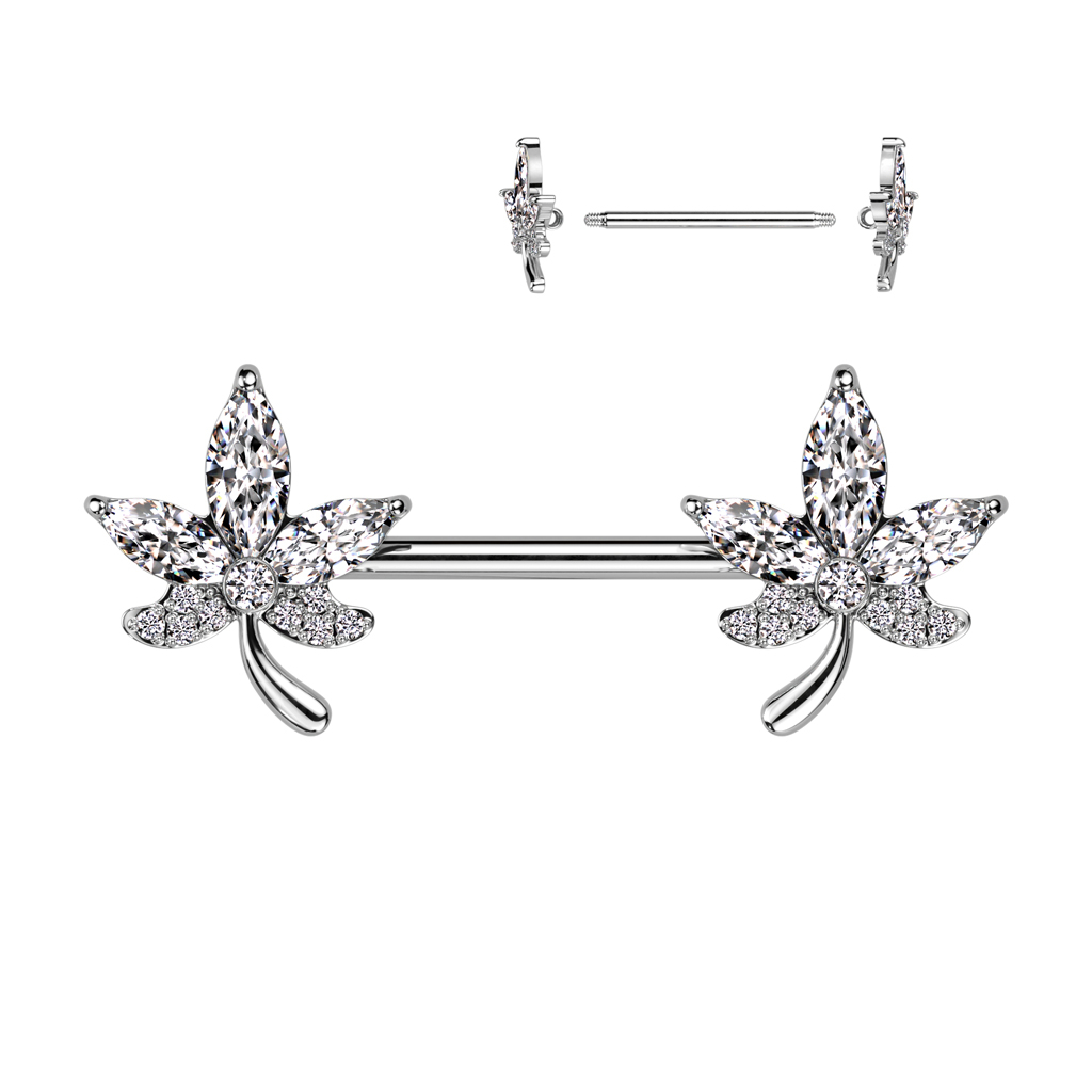 Tento krásný třpytivý šperk do bradavky s listy, které jsou poseté spoustou kamínků.