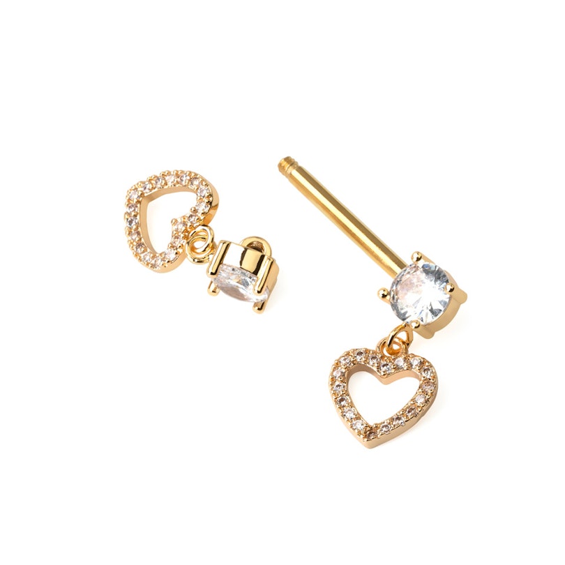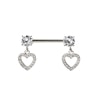 Tato krásná činka do bradavky je na každém konci ozdobená zirkony a z každého zirkonu visí přívěsek ve tvaru srdíčka a ten je posetý ještě víc zirkony.