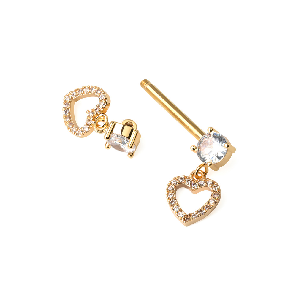 Tato krásná činka do bradavky je na každém konci ozdobená zirkony a z každého zirkonu visí přívěsek ve tvaru srdíčka a ten je posetý ještě víc zirkony.