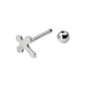 Vrchní kulička piercingu má tvar kříže, a není možné ji odšroubovat. Křížek je 2,5mm tlustý, 10mm široký a 12mm vysoký. Spodní kulička šperku má průměr 5mm.