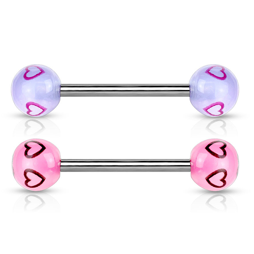 Tento piercing do jazyka je vyroben z chirurgické oceli a je zdobený dvěma kuličkami z akrylátu. Jestli rádi ťukáte kuličkami o své zuby, akrylát bude vaše zuby chránit před poškozením, což z něj dělá skvělý materiál vhodný pro piercingy do jazyka.
