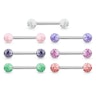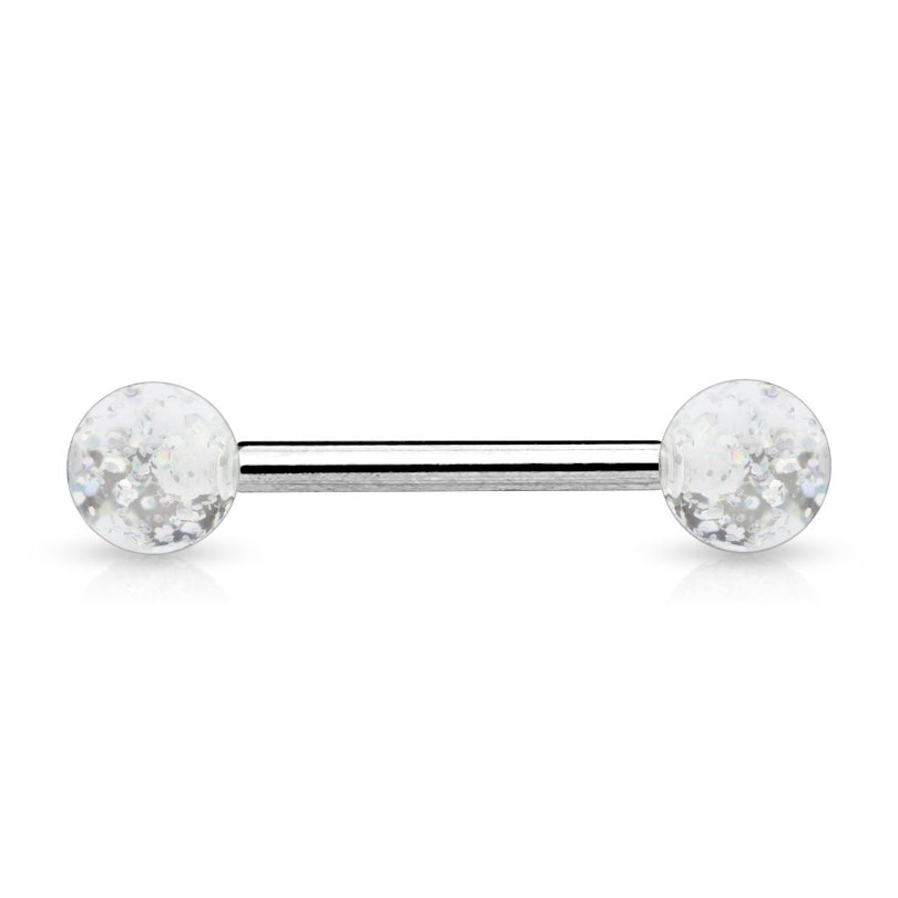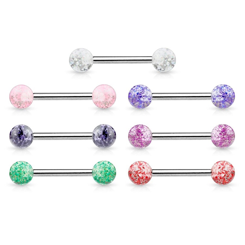 Činka do jazyka z chirurgické oceli s kuličkami z akrylátu se třpytkami