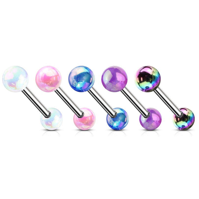Celý šperk je vyroben z chirurgické oceli, tyčinka však nebyla potažena, ale zůstala ve své původní zářivě stříbrné barvě, což vytváří tu nejlepší možnou kombinaci s každou dostupnou barvou kuličky.