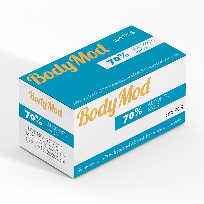 Tyto ubrousky obsahují 70% isopropyl alkoholu a 30% vody a lze jej používat pouze na piercingy, které jsou v procesu hojení.