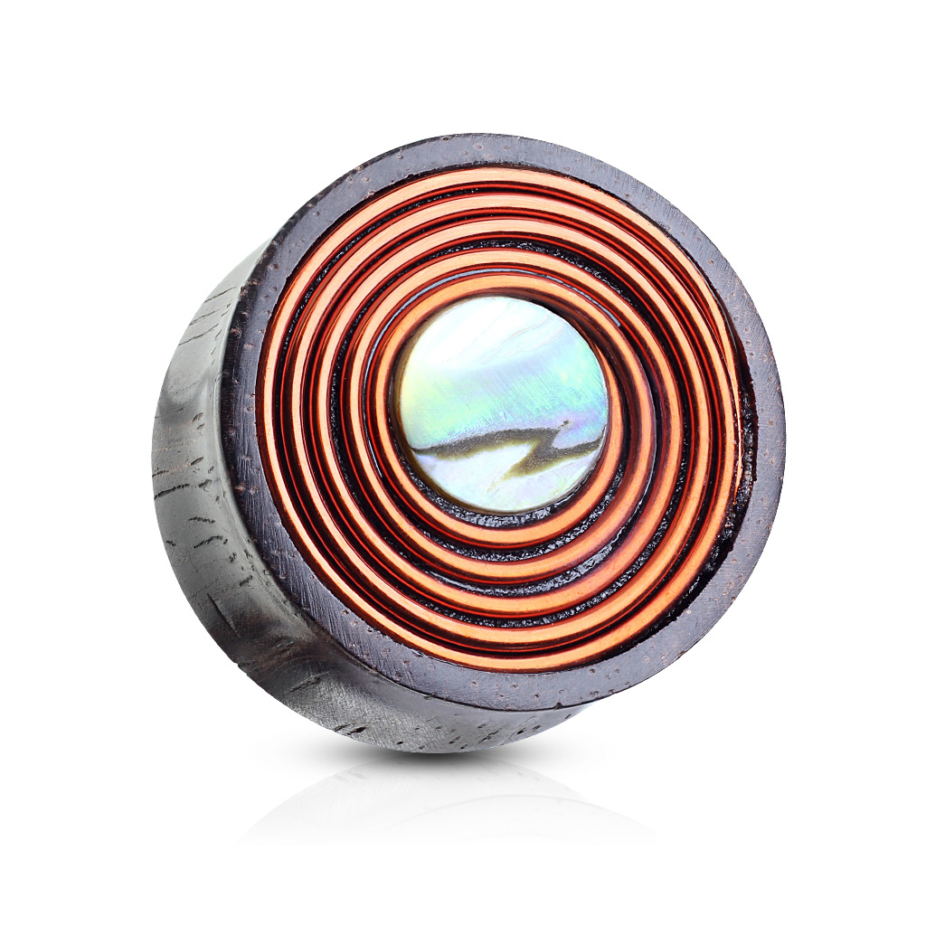 Dřevěný plug s perletí a měděným drátem