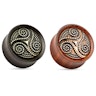Krásný motiv tří spirál je symetricky umístěný mezi tečkami. Je vyrobený z mosazné destičky, která krásně kontrastuje s barvou dřeva. Model z palisandrového dřeva má teplou barvu, která perfektně ladí se zlatým leskem vzoru. Pokud chcete opravdu přitáhnout pozornost, vyberte si model z ebenového dřeva. Tmavá barva v kombinaci se zlatým tribal motivem vytváří ještě větší kontrast.