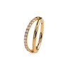 Tento dvojitý titanový kroužek s kamínky na jednom proužku z kolekce Bodymod trend's působí díky svému rozdělenému designu velmi svěže; jedna polovina je hladká a minimalistická a ta druhá polovina je osázená kamínky. Dvě nálady, jeden kroužek.