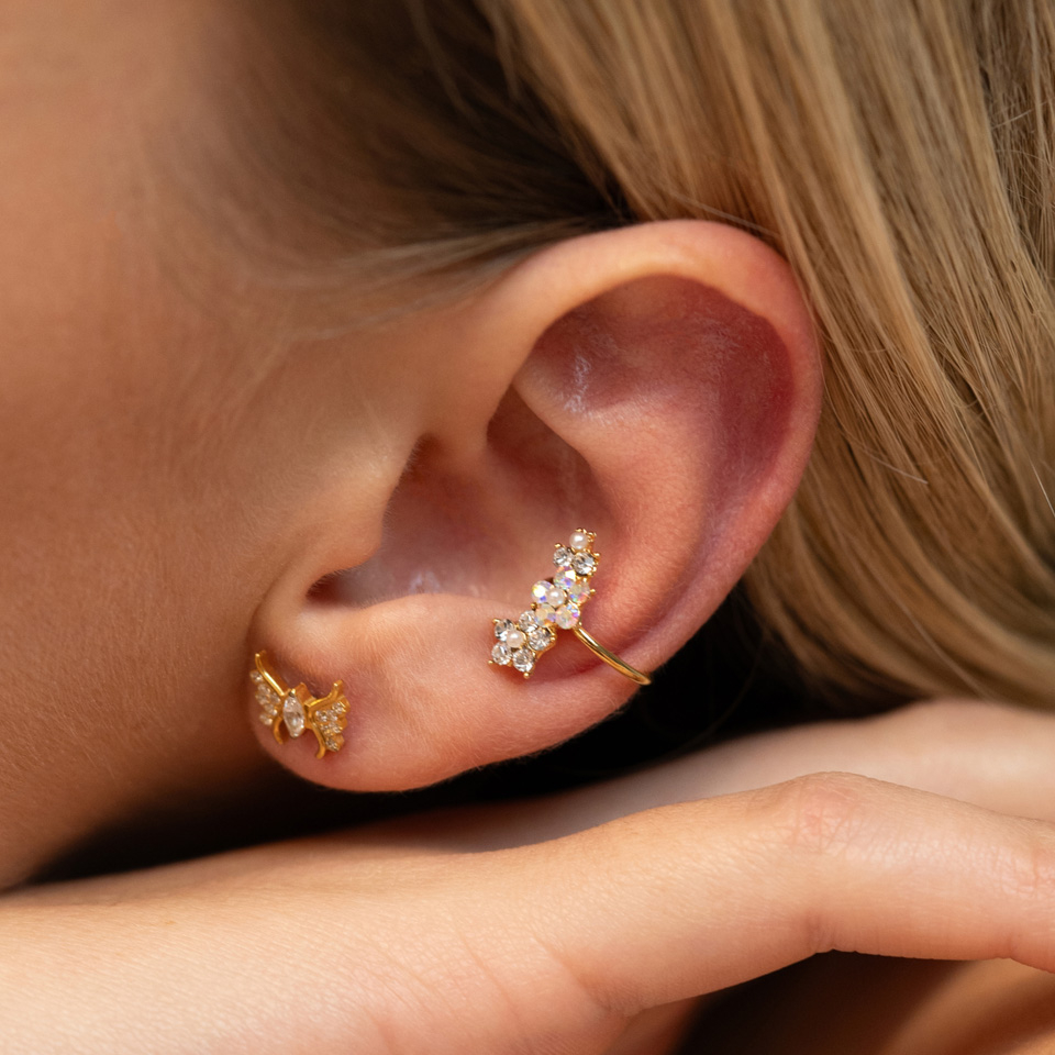 Falešný piercing do ucha - klips s květinami a perlami