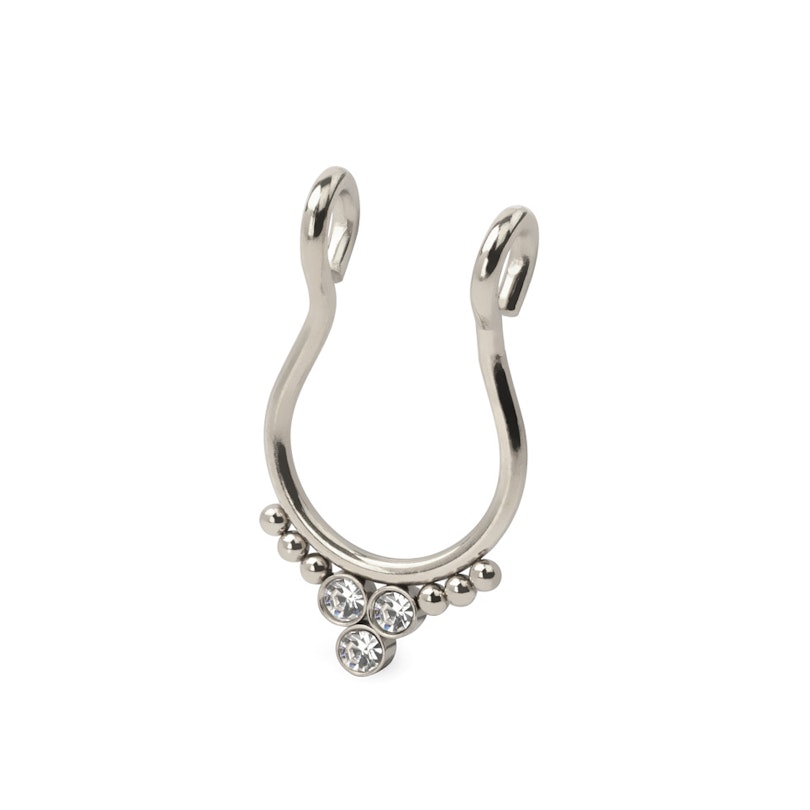 Klipsové šperky jsou nejlepší pro okamžitou změnu stylu. Tento falešný septum šperk se připevňuje k nosu ve stejném místě, kde prochází skutečný piercing, takže nikdo nepozná rozdíl. Nejedná se jen o hezký šperk - je vyrobený z bezpečného a kvalitního materiálu a to z chirurgické oceli 316L.