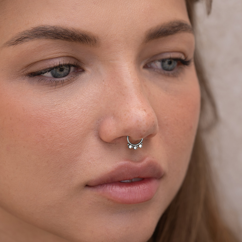 Falešný septum se třemi kamínky a malými korálky