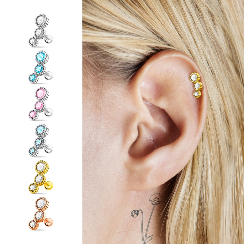 Helix piercing se třemi kulatými kamínky různých velikostí