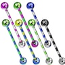 Tento piercing je k dispozici v 7 barevných provedeních, které odlišuje pouze jejich barva. Kromě barvy jsou naprosto identické, a to ať už jde o jejich délku, tloušťku, nebo průměr jejich kuliček. Tyčinka je vyrobena z chirurgické oceli, která byla pokryta těmito krásnými barvami. Možná by Vás zajímalo, jak bylo tohoto barevného vzoru docíleno, a odpověď je jednoduchá - zakryli jsme kousky piercingu, které jsme obarvit nechtěli, a odhalené části jsme nechali ionizovat. Jednoduchý a chytrý trik, který jim dodá úplně nový rozměr.