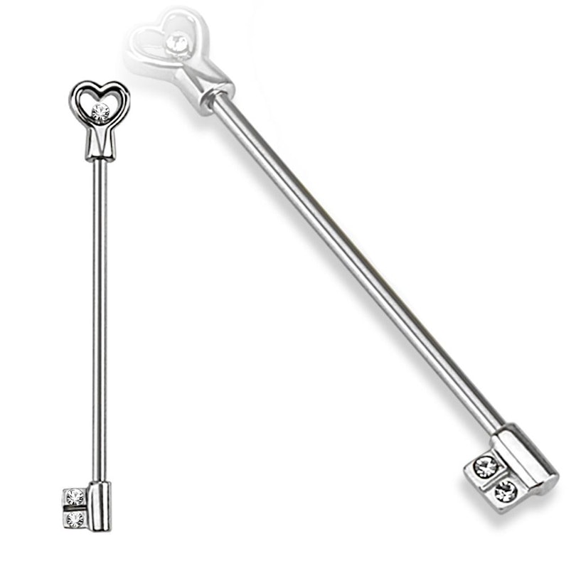 Štíhlý, výrazný a elegantní - tento industrial je pro Vaše ucho přímo perfektní. Jeho desing je velmi roztomilý a ženský - jedná se o klíček se srdíčkem na konci. Zoubky klíče zdobí dva drobné kamínky, zatímco další je umístěn na srdci. Kamínek je k dispozici v několika barevných provedeních, a Vy si můžete vybrat mezi čirou, růžovou, nebo tyrkysovou barvou.
