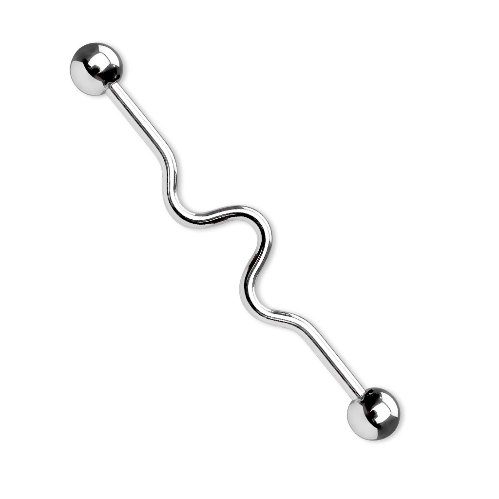 Tento šperk je vyrobený z chirurgické oceli, a je k dispozici ve stříbrné, černé modré, žluté a duhové barvě. Zvlněný design piercingu nijak neohrozí schopnost piercingu zůstat na místě, a piercing bude velmi pohodlný na nošení.