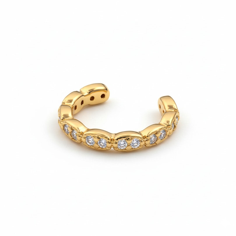 Šperk je vyroben z pozlacené mosazi, vhodný pro většinu typů pokožky a navržený pro každodenní nošení. Odolný proti stříkající vodě, pevný a snadno se nasazuje, tato ear cuff náušnice je jednoduchým způsobem, jak změnit vzhled bez trvalého závazku.