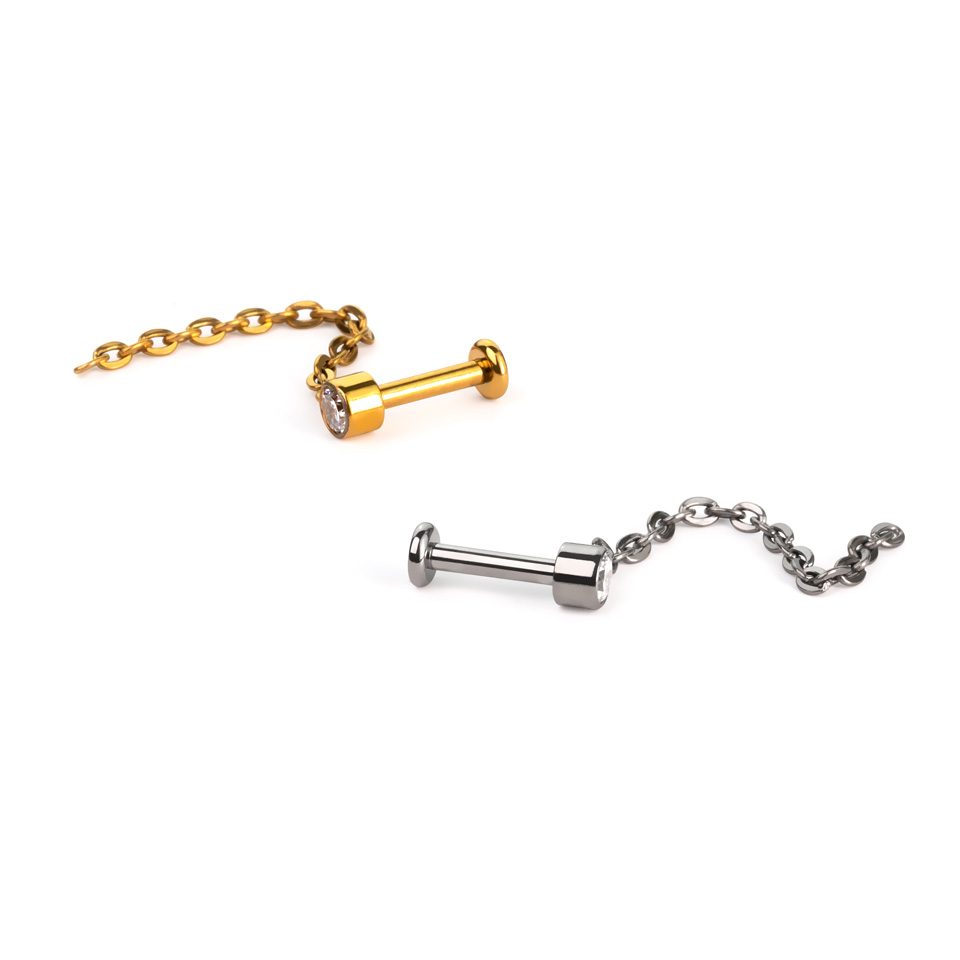 Tato jemná labreta je zdobená malým kamínkem o velikosti 3 mm. Ke spodní části kamínku je připevněn 26 mm dlouhý řetízek. Tato labreta bude vypadat fantasticky ve vašem tragusu, helixu nebo ušním lalůčku, kde bude krásně doplňovat vaše ostatní šperky.