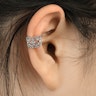 Tento klips do ucha je vyroben z mosazi a potažen rhodiem, což mu dodává stříbrný a lesklý povrch, který můžete vidět na obrázku výše.