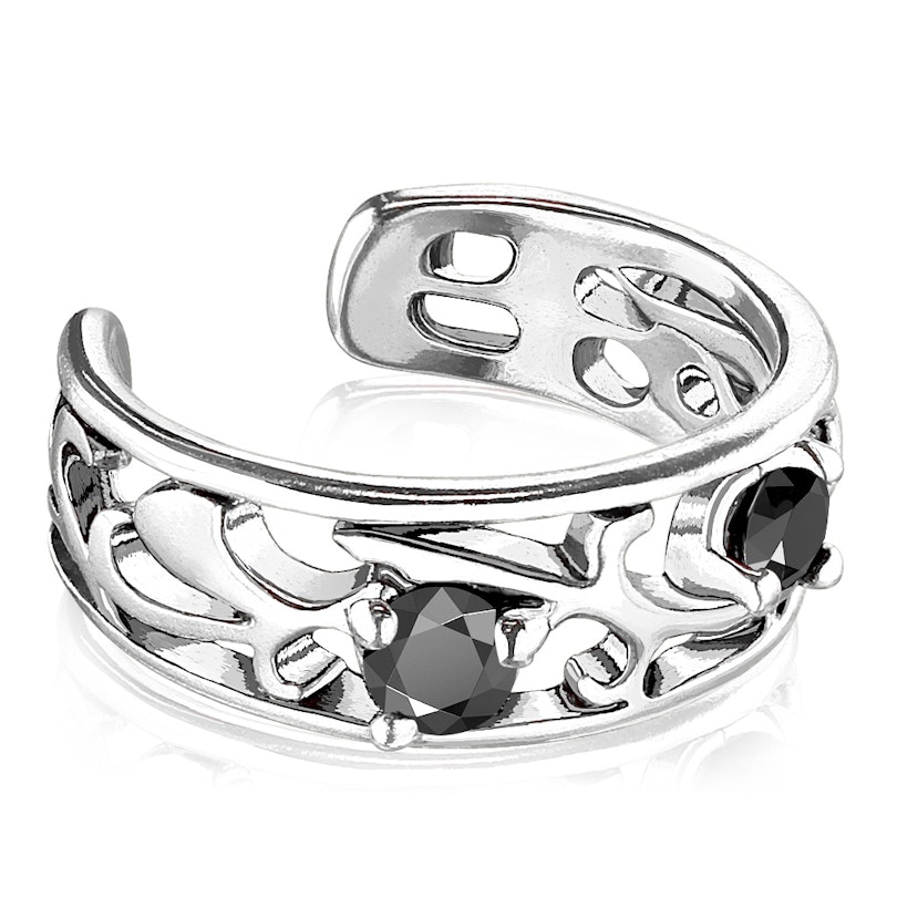 Tento klips do ucha má krásné filigránové zdobení inspirované přírodou s liniemi, které představují větve. Kromě toho má klips dva malé černé kamínky, umístěné samostatně na vnější straně klipu, což vytváří zajímavou asymetrickou kompozici. To je strana, která bude viditelná, když jej budete nosit v ušním lalůčku nebo chrupavce.