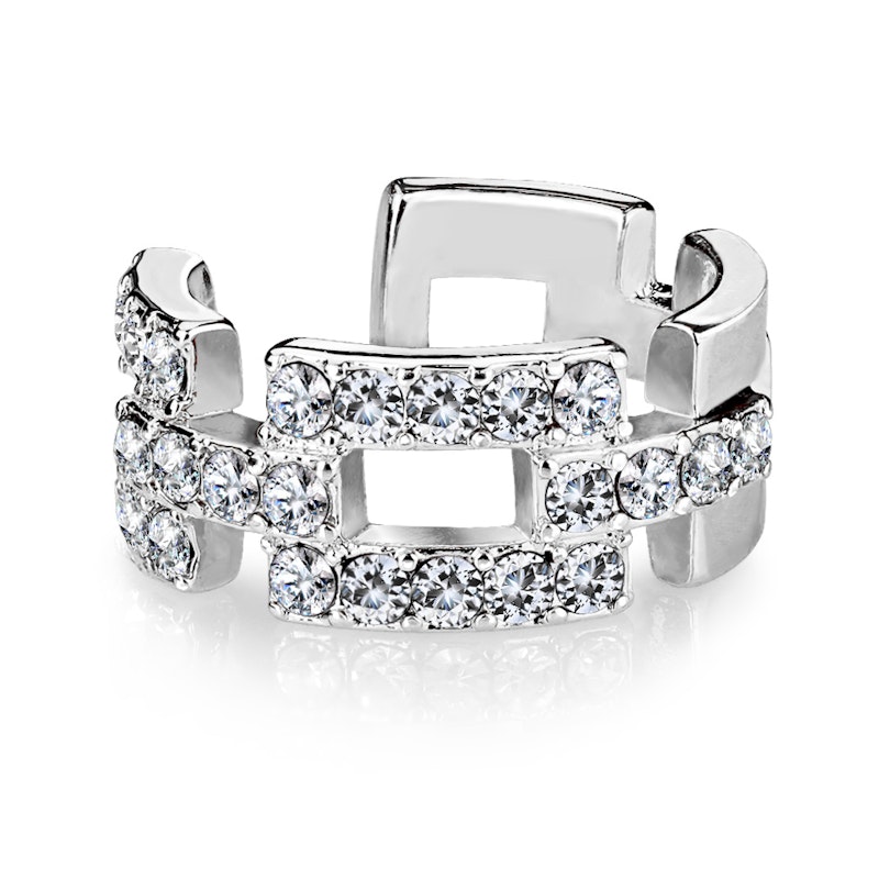 Design se skládá z mnoha obdélníků, které jsou umístěny vedle sebe, téměř jako řetěz. Na vnějším okraji je na každém obdélníku až pět kamínku - s tímto jiskřivým klipem vám už kamínky nebudou chybět.