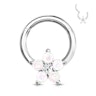 Kroužku, který můžete vidět na obrázku, se říká nekonečný, tzv. endless ring. Samozřejmě však konec má, jinak by se nedal nasadit. Jak si můžete všimnout v horním rohu obrázku, kroužek je vybaven vyklápěcím kloubem, díky kterému jej lze otevřít a zavřít. Díky tomuto způsobu uzavírání tedy nehrozí, že byste mohli při manipulaci se šperkem ztratit nějakou jeho část.