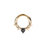 Tento kroužek, který směřuje dopředu má design ostnatého drátu s černým centrálním kamínkem ve tvaru srdce. Jelikož je vybaven pantem, lze jej snadno upevnit do piercingu.