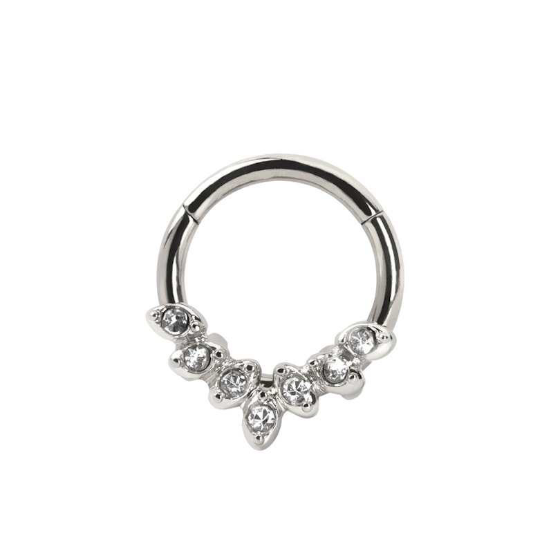 Kroužek s otevíráním z chirurgické oceli s lístky a kamínky