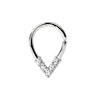 Tento twist kroužek má tvar slzy a jeho přední stranu zdobí 5 čirých kamínků. Jelikož je kroužek vyroben z chirurgické oceli, je pevný a neztrácí lesk. Je dostupný v tloušťce 1 mm a 1,2 mm, což znamená že jej můžete nosit v řadě různých piercingů včetně septumu, tragusu a helixu.
