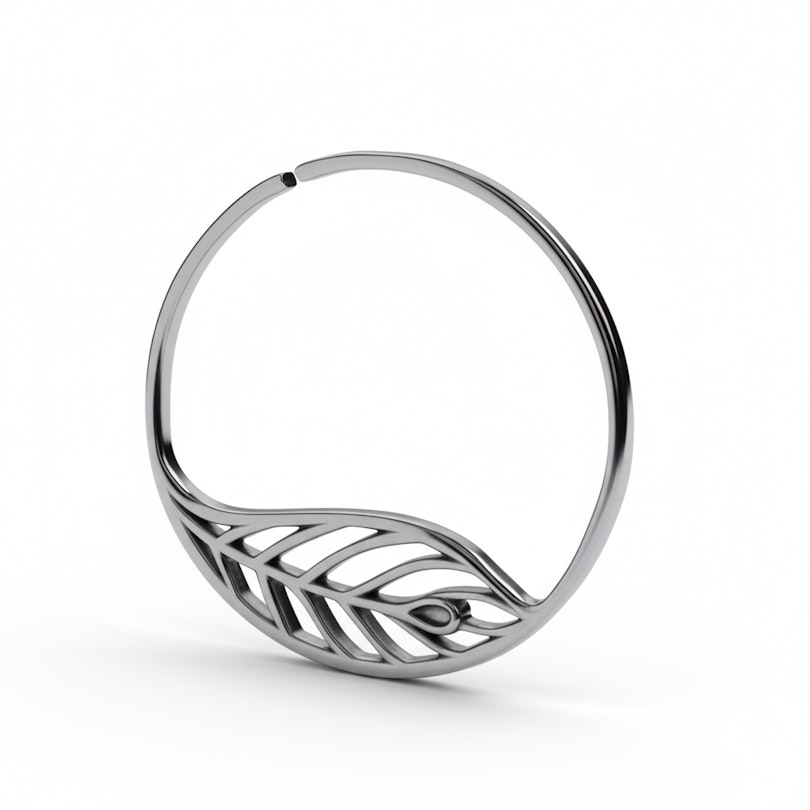 Decentní motiv listu dodává kruhu dynamiku a osobnost. Tento šperk je důkazem toho, že i roztažené ušní lalůčky můžou být odvážné a krásné.