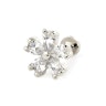 Jak při čtení názvu můžete hádat, tuto labretu zdobí krásná květina. Okvětní lístky jsou tvořeny skupinou kamínků. To znamená, že má květina svůj tvar díky pěti krásným čirým kamínkům ve tvaru kapky, které září na horní straně tohoto šperku.
