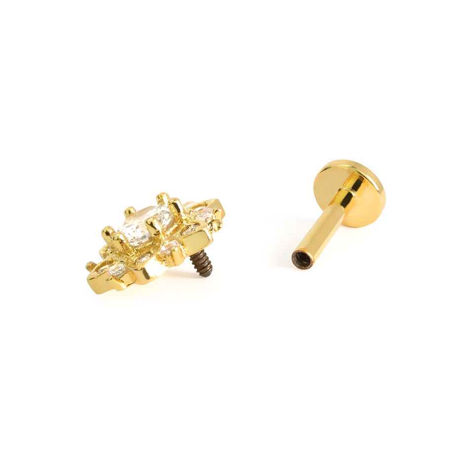 Tato labreta je vyrobena z chirurgické oceli. Je vybavena vnitřním závitem což znamená, že tyčinka má uvnitř závit. Horní ozdoba je vybavena šroubkem, který se zašroubuje do tyčinky, aniž byste při vkládání šperku riskovali poškození pokožky.