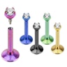 Představujeme Vám skvělou labretu vyrobenou z chirurgické oceli a pokrytou krásnou titanovou vrstvičkou. Labreta je k dispozici v pěti úžasných barvách, které jsou speciální svými krásnými metalickými tóny. Další výhodou tohoto piercingu je jeho vnitřní závit, který zabrání poškození Vaší kůže při nasazování či sundávání piercingu.