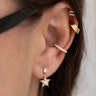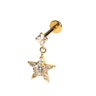 Tato labreta s vnitřním závitem má kuličku zdobenou jedním kamínkem, z něhož visí přívěsek ve tvaru hvězdy, posetý kamínky.