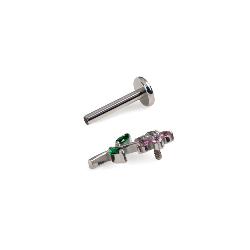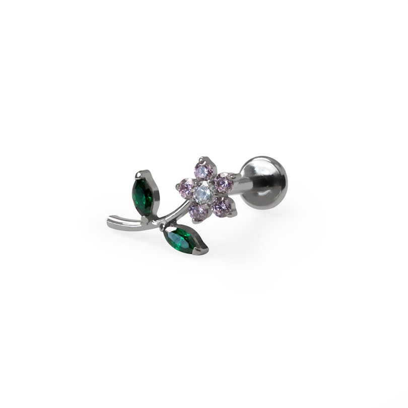 Tahle labreta s roztomilou květinou a plochou zadní částí dodá vašemu looku nádech jara. Květina tvořená z kamínků držených krapnami s akcenty zelených listů kombinuje hravé detaily s každodenní nositelností. Je vyrobena z chirurgické oceli 316L, takže je odolná, voděodolná a vhodná pro většinu typů pokožky.