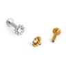 Labreta, kterou můžete vidět na obrázku, je k dispozici ve dvou délkách. Navíc, jak si můžete na obrázku všimnout, tuto labretu si můžete pořídit ve čtyřech různých barvách. Všechny modely jsou vyrobeny z chirurgické oceli a mají PVD úpravu, což znamená, že je jejich barva odolnější, než u šperků barvených klasicky. Všechny modely jsou ozdobeny čirým kamínkem uprostřed.