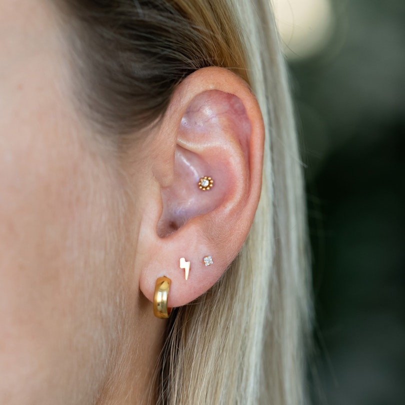 Umístění: Tragus, Spiderbite, Snakebite, Medusa, Madonna, Spodní labreta, Ušní lalůček, Helix, Conch, Přední helix, Angelbite
