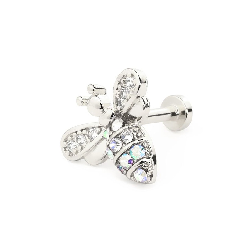 Pokud chcete výrazný doplněk pro svůj piercing v uchu, jste na správném místě. Tato včelka je opravdu poutavým kouskem s mnoha třpytivými kamínky a rozhodně upoutá pozornost. Rozměry tohoto detailně propracovaného designu včelky jsou 11x10 mm, takže se jedná o poměrně nápadný kousek.