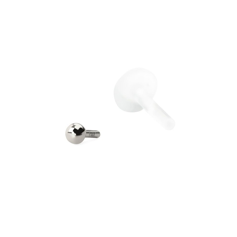 Představujeme exkluzivní labretu s tyčinkou vyrobenou z měkkého PTFE materiálu, který je neškodný pro vaše zuby a dásně. PTFE je pružný plastový materiál, který vám při nošení piercingu poskytne neuvěřitelné pohodlí.