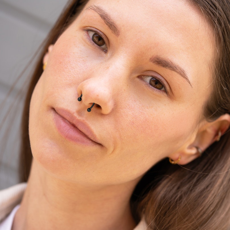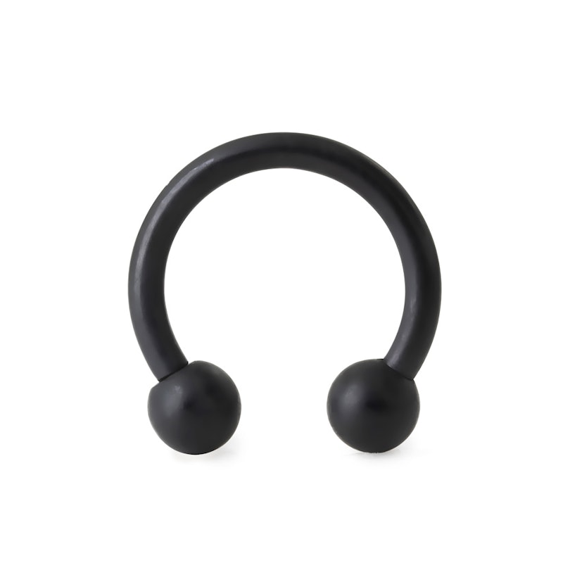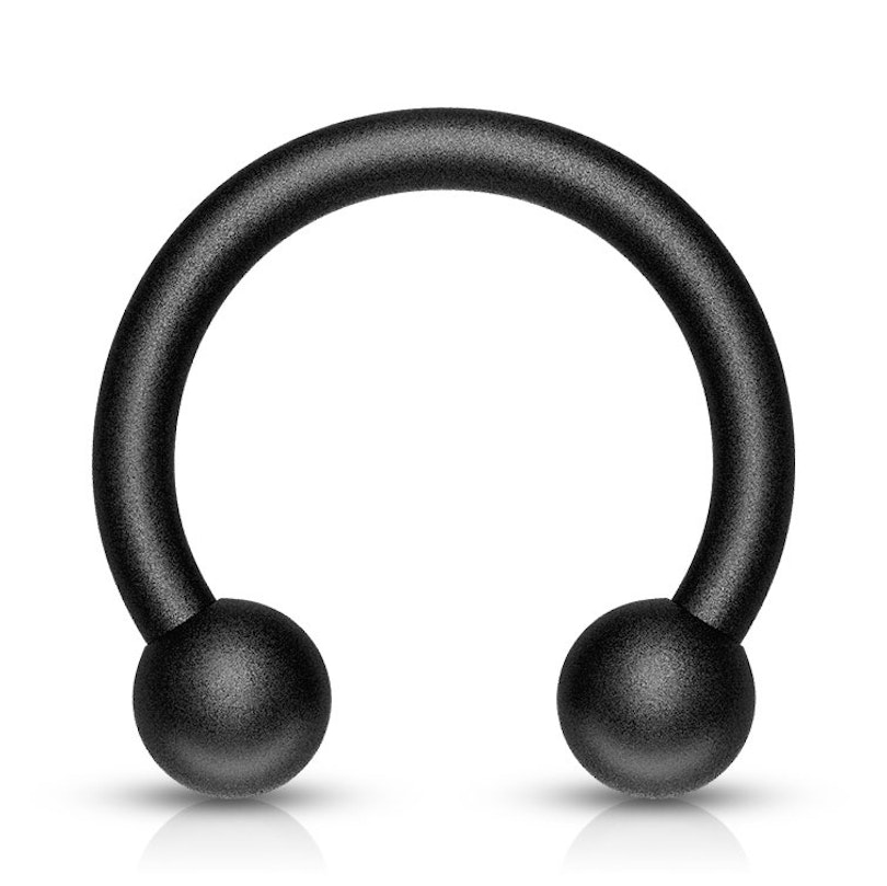 Jako všechny ostatní podkovy, i tato má na koncích piercingové kuličky. Jediným rozdílem je, že tato podkova má velmi neobvyklou barvu. Většina barevných šperků jsou lesklé, avšak tento šperk je potažený úžasnou, matnou vrstvičkou černé barvy, která dělá podkovu diskrétnější a dodává jí moderní vzhled.