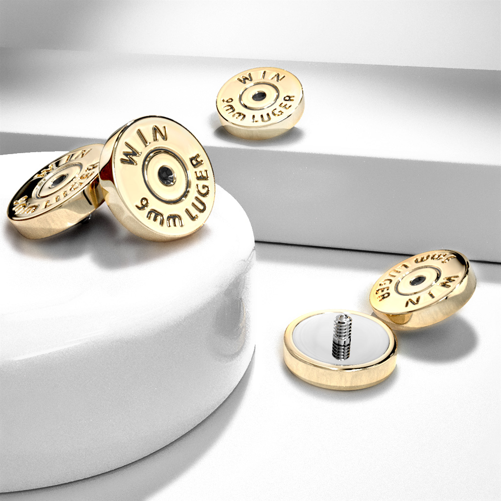 Právě jste se dostali k velmi originálnímu kousku - mikrodermálu ve tvaru zadní části náboje. Samozřejmě to není opravdový náboj, protože ten by nejspíš nebyl vhodný pro piercing, avšak i tak je tento piercing skvělý, protože náboj je napodobeninou nábojů z pušky Winchester, kterou jste mohli vidět v mnoha kovbojských filmech.
