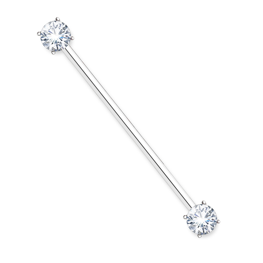 Představujeme Vám jeden z nejkrásnějších industrialů, které kdy uvidíte. Jeho tyčinka je vyrobena z chirurgické oceli, a na obou koncích je šroubovací kulička ozdobená krásným zirkonem. Zirkony jsou naaranžovány do půlkruhu, který obklopuje ocel stejné barvy jako zbytek konstrukce. Zirkon je na šperku udržován pomocí krapen, které zaručí, že zirkony zůstanou na svém místě. Obě kuličky se dají odšroubovat.