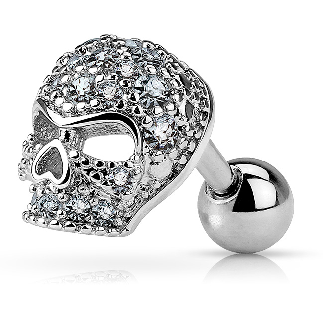 Představujeme Vám překrásný piercing s úžasnou lebkou, která se skví na 6mm dlouhé tyčince zakončené 4mm kuličkou. Tento piercing můžete využít v mnoha různých piercingových dírkách, například v tragusu, helixu, či ušním lalůčku. Ať už si ho však nasadíte kamkoliv, dodá Vám úžasnou rockerskou image.