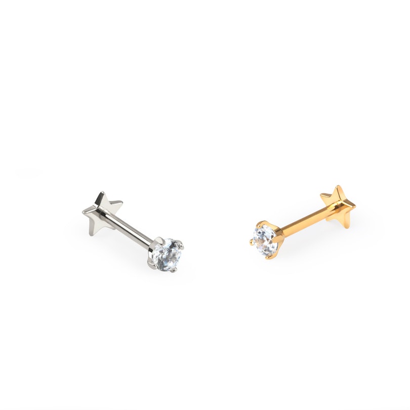 Tato titanová labreta je vybavená plochými zády ve tvaru hvězdy, což je perfektně využitelné v piercinzích ušního lalůčku a nebo helixu, kde je zadní strana vašeho šperku viditelná.