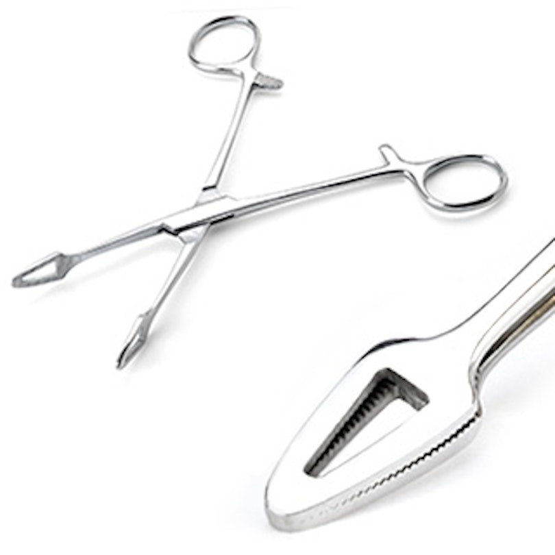Každý profesionální piercer by měl mít k ruce jedny obrácené Pennington kleště. Tyto kleště měří 15,9 cm (6,25''), a jejich hlava má 11 x 5,5 mm (7/16'' x 1/4'').
