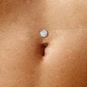 Tento obrácený piercing do pupíku má horní kuličku zdobenou čirým zirkonem a sedí nad samotným pupíkem. Druhý konec je vybaven plochým diskem, který diskrétně sedí v pupíku a vytváří dojem, že se šperk vznáší.