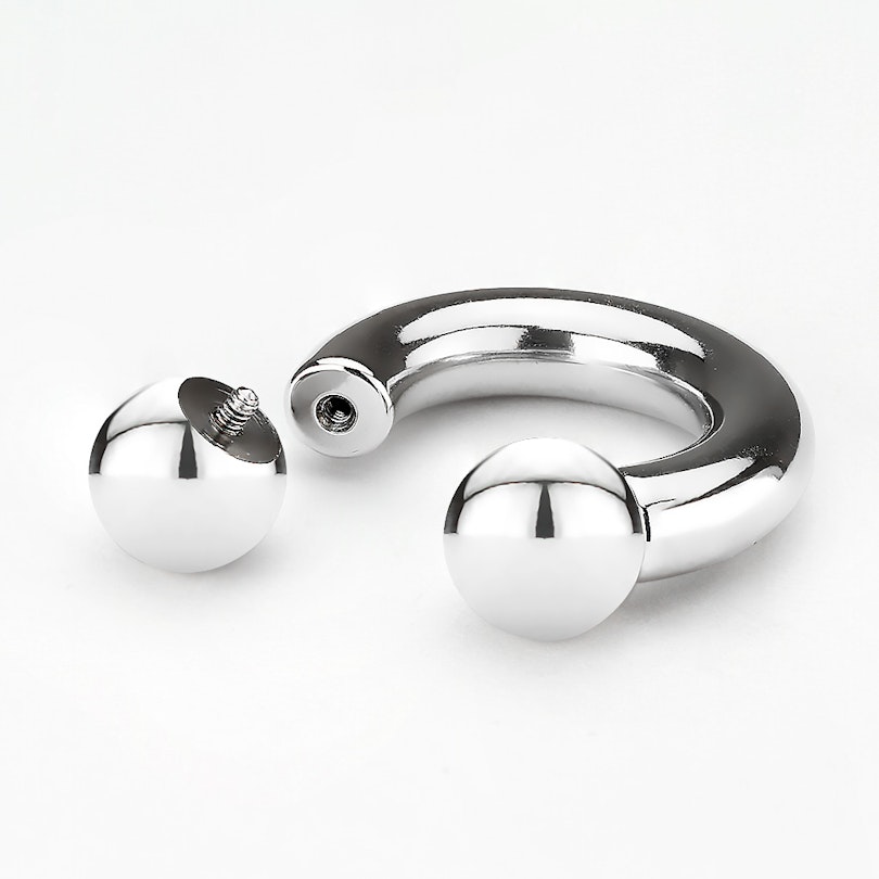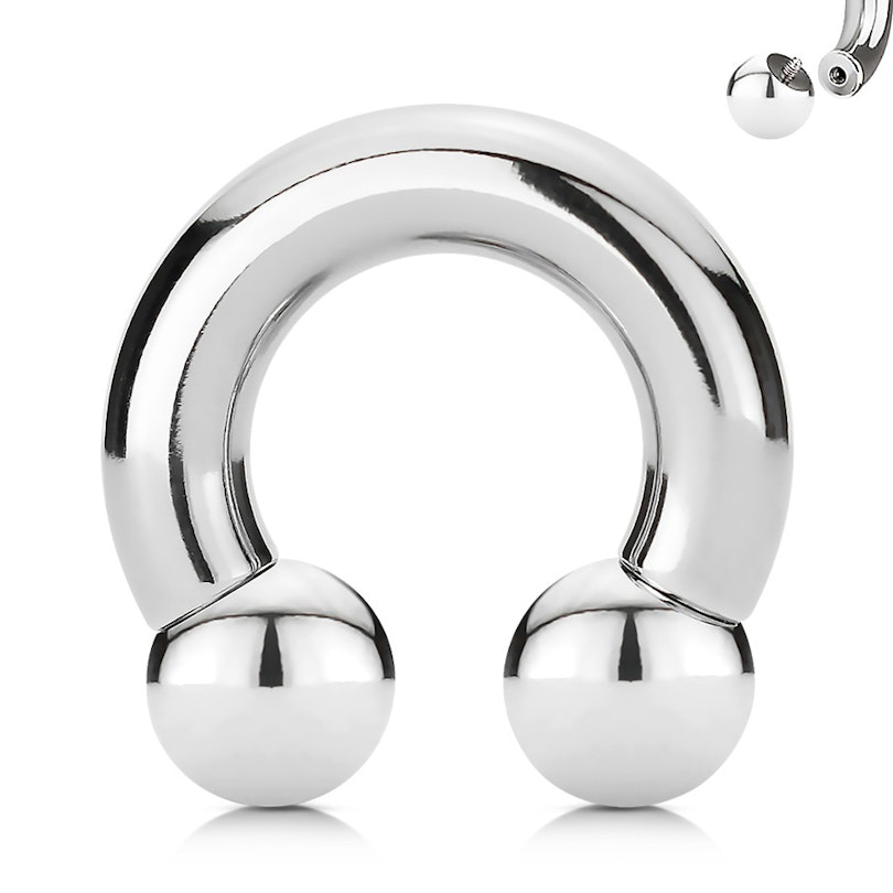 Tato podkova je vyrobená z chirurgické oceli, což je krásný, lesklý materiál, který vypadá elegantně a nadčasově. Tato úžasná podkova je navíc k dispozici v několika různých tloušťkách a průměrech, a určitě tedy najdete takovou velikost, která Vám bude vyhovovat.